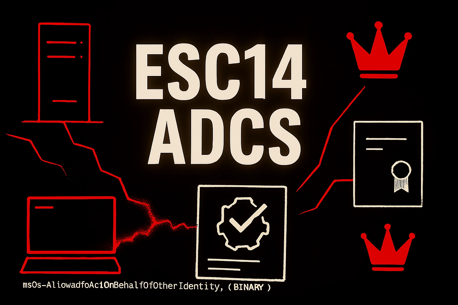 ESC14 è spesso trascurato ma può portare a compromissione completa del dominio. Guida completa agli attacchi AD CS: https://hackita.it/articoli/adcs-esc1-esc16Continua con le tecniche successive: https://hackita.it/articoli/esc15-adcs · https://hackita.it/articoli/esc16-adcsSupporta HackIta: https://hackita.it/supportoPentest Active Directory o formazione offensiva: https://hackita.it/serviziRiferimenti tecnici: https://specterops.io/blog/2021/06/17/certified-pre-owned/ https://github.com/ly4k/Certipy
