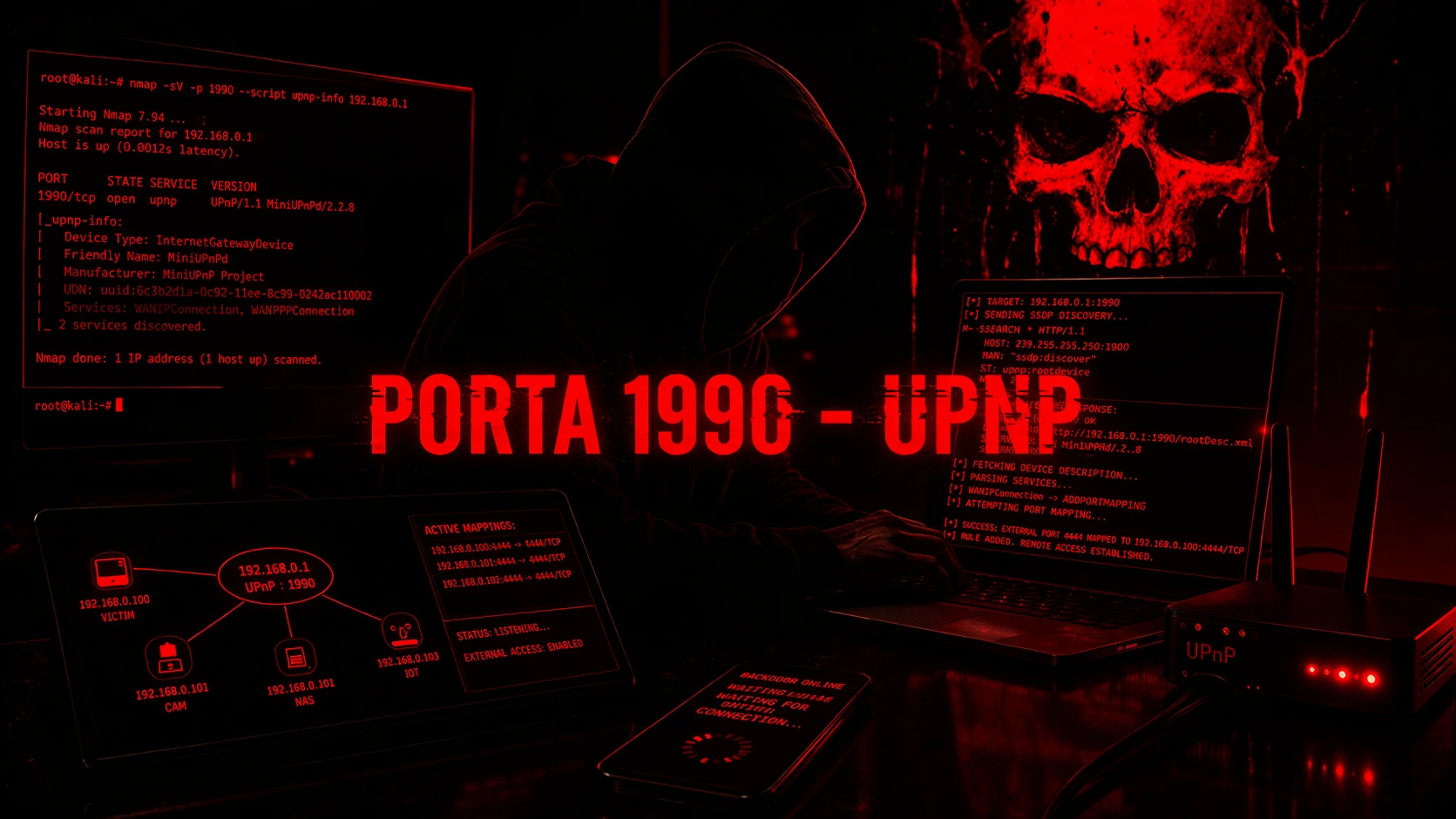 Porta 1990 UPnP nel pentest: SOAP action, port mapping abuse, device control e analisi dei servizi IGD esposti sul router.