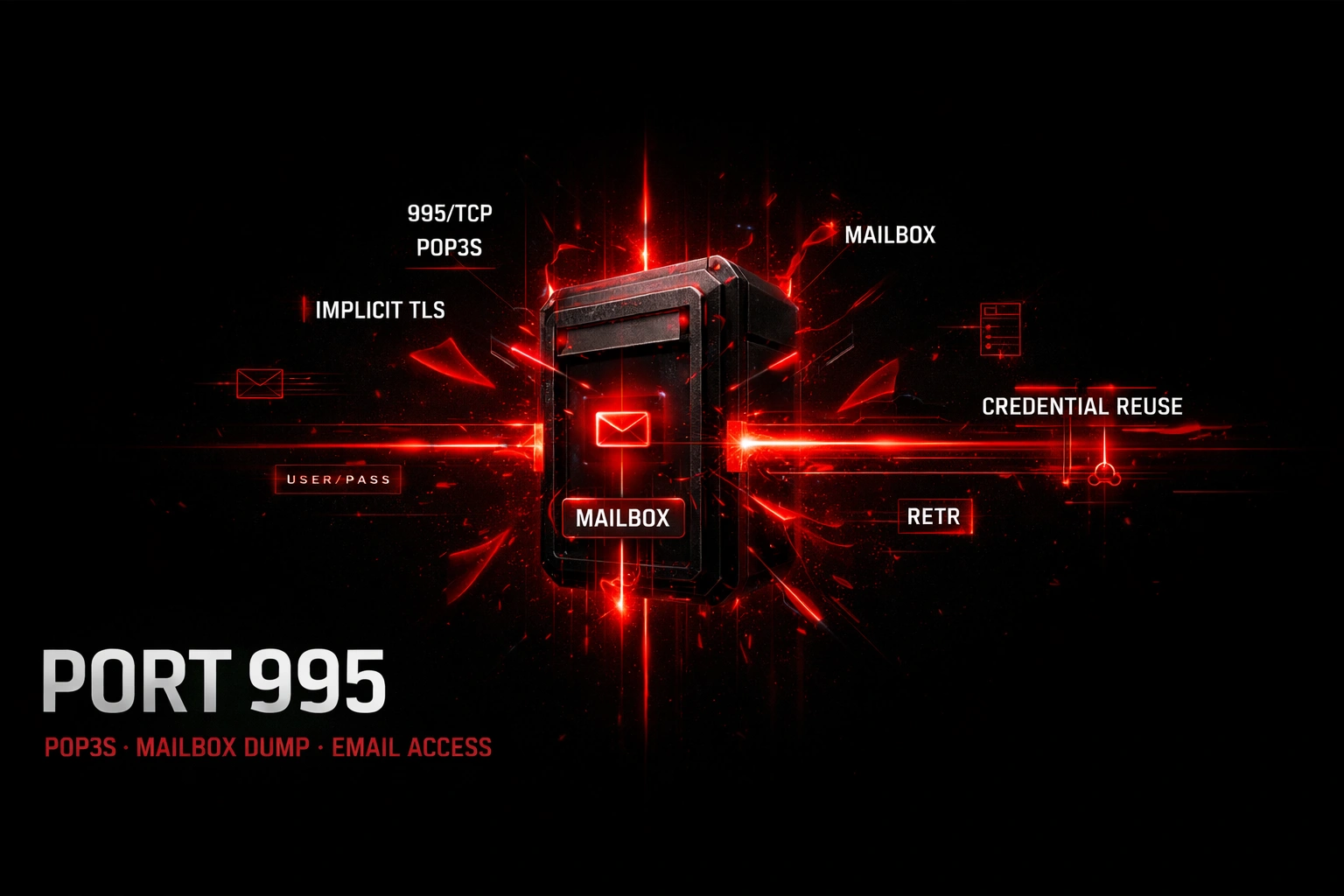 Executive Summary — La porta 995 espone POP3S (POP3 over implicit TLS), il protocollo per scaricare email dalla mailbox. POP3 è più semplice di IMAP — scarica e (opzionalmente) cancella i messaggi dal server. Un accesso POP3S compromesso significa leggere tutte le email dell’utente, che spesso contengono password in chiaro, link di reset password, documenti riservati e informazioni interne. Le credenziali POP3 sono quasi sempre le stesse dell’account email (AD, O365, Google) — il credential reuse è automatico. Questa guida copre brute force, mailbox dump e analisi email per information gathering.