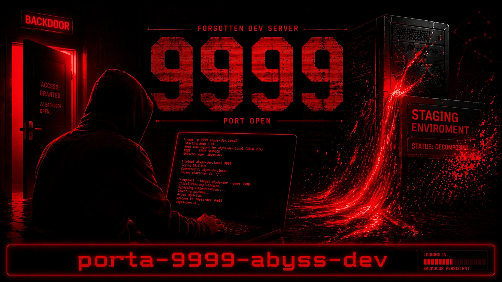 Porta 9999: Abyss Web Server directory traversal e admin bypass, Icecast buffer overflow RCE CVE-2004-1561, Varnish admin esposto, staging server senza protezioni e backdoor detection.